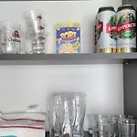 Στην κουζίνα μπορείτε να χρησιμοποιήσετε φούρνο μικροκυμάτων και ψυγείο.